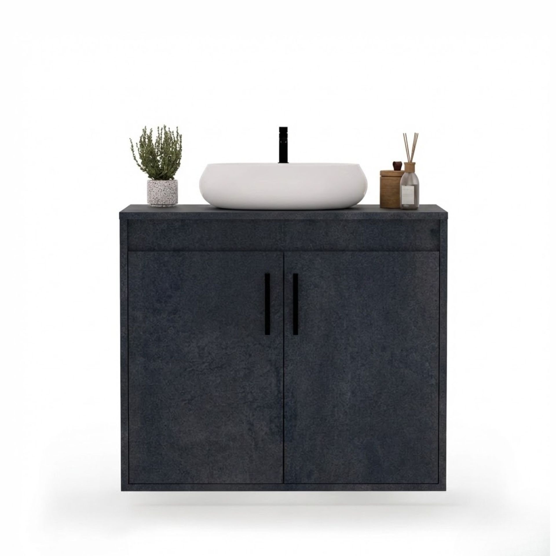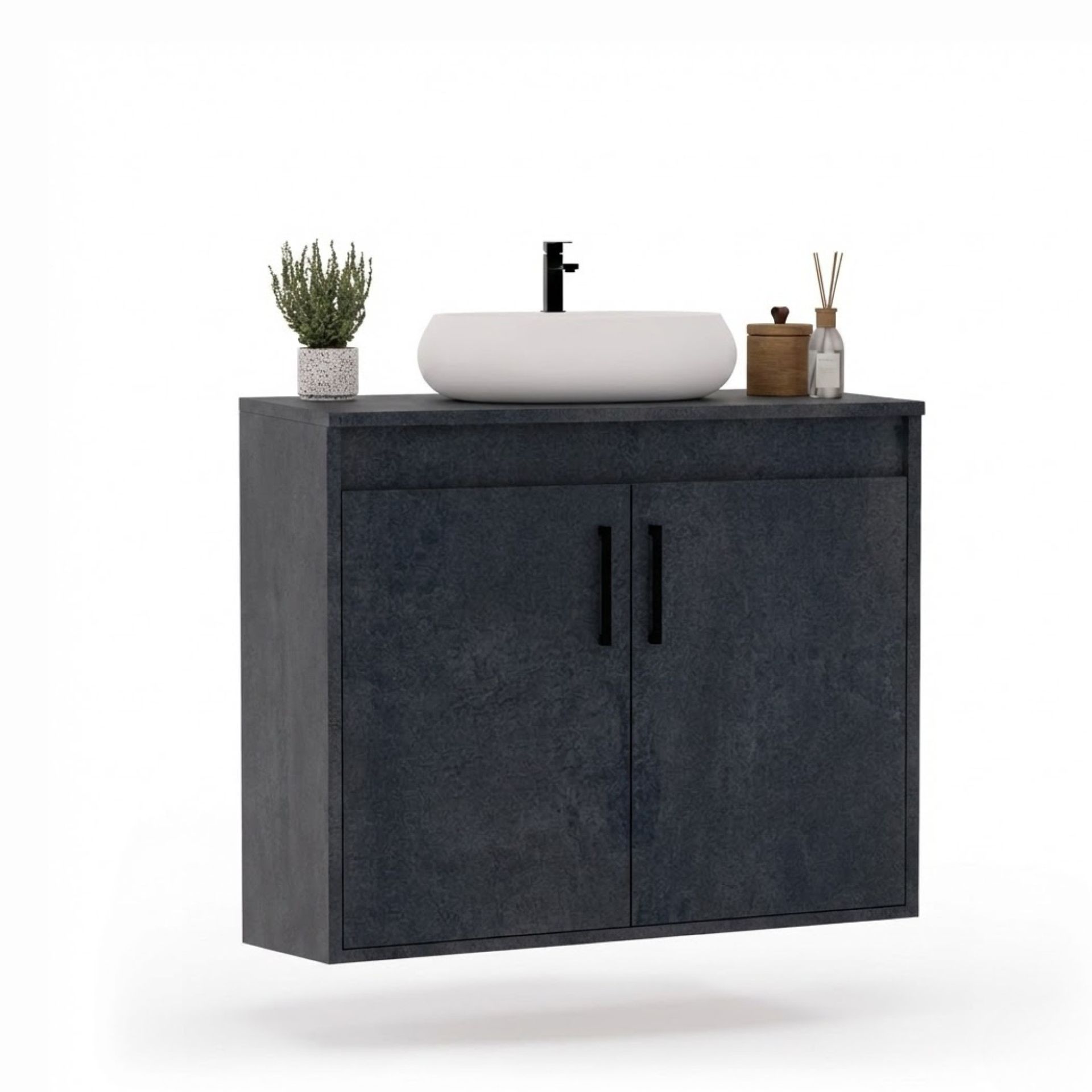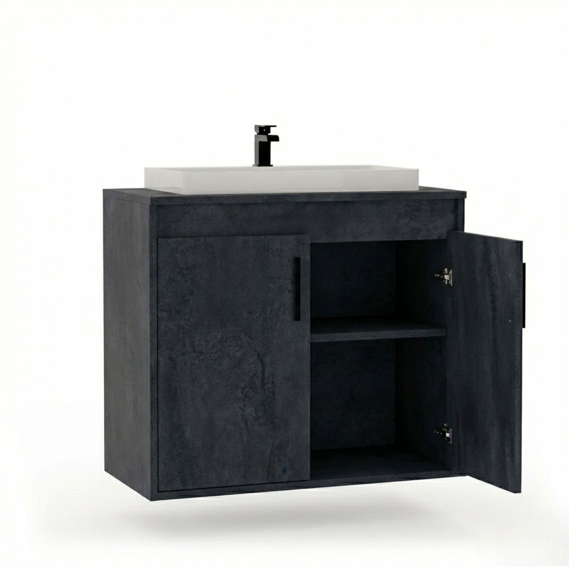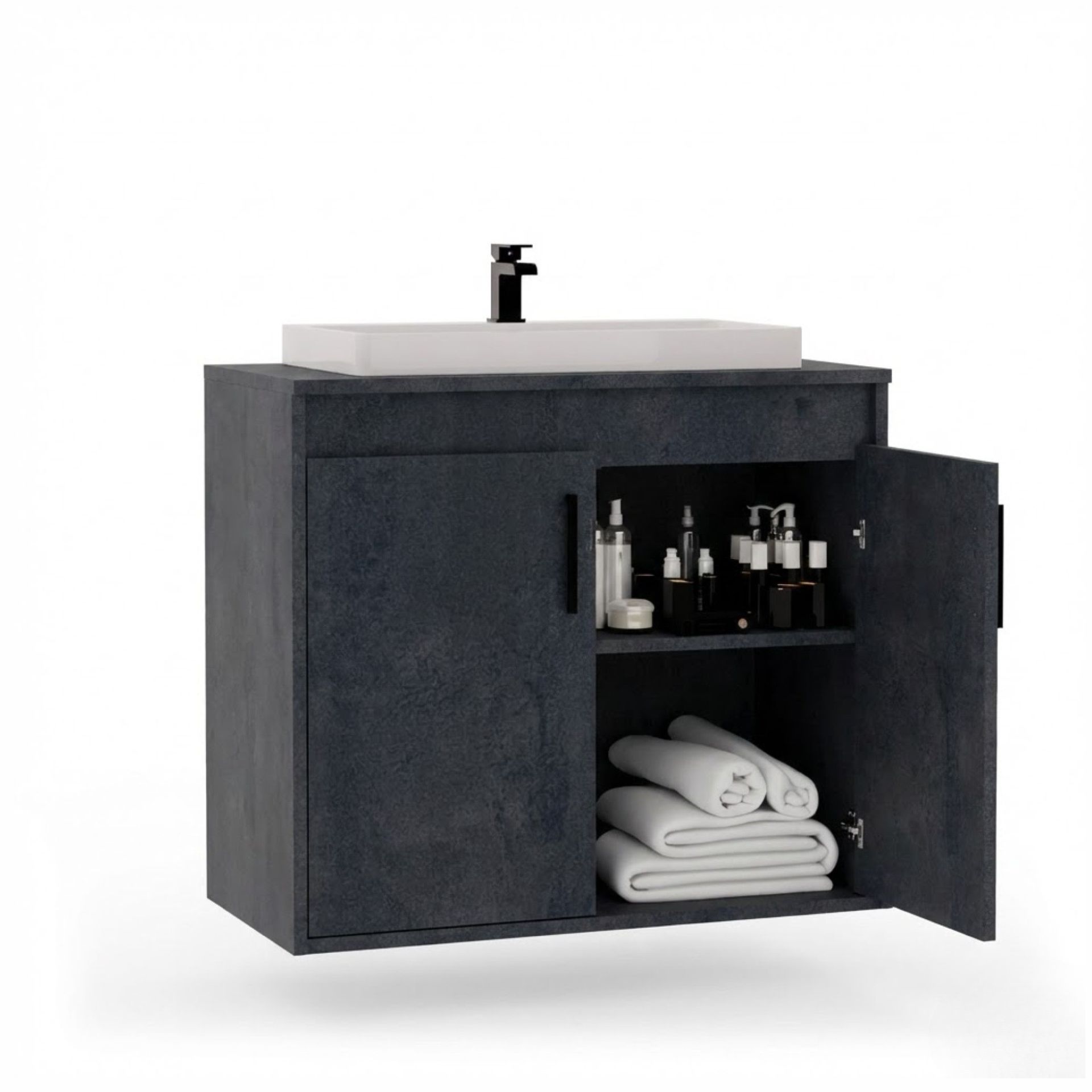 Wisząca łazienkowa szafka pod umywalkę - Beton czarny