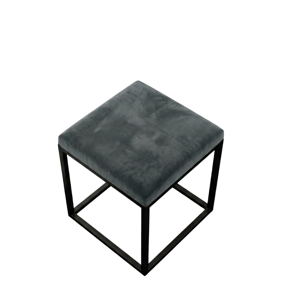 Stelaż pufy wykonany jest ręcznie z metalu o profilu 2x2 cm i malowany proszkowo na elegancką czarną mikrostrukturę. Solidność i estetyka idą tu w parze, co czyni mebel nie tylko trwałym, ale też stylowym dodatkiem do wnętrza.