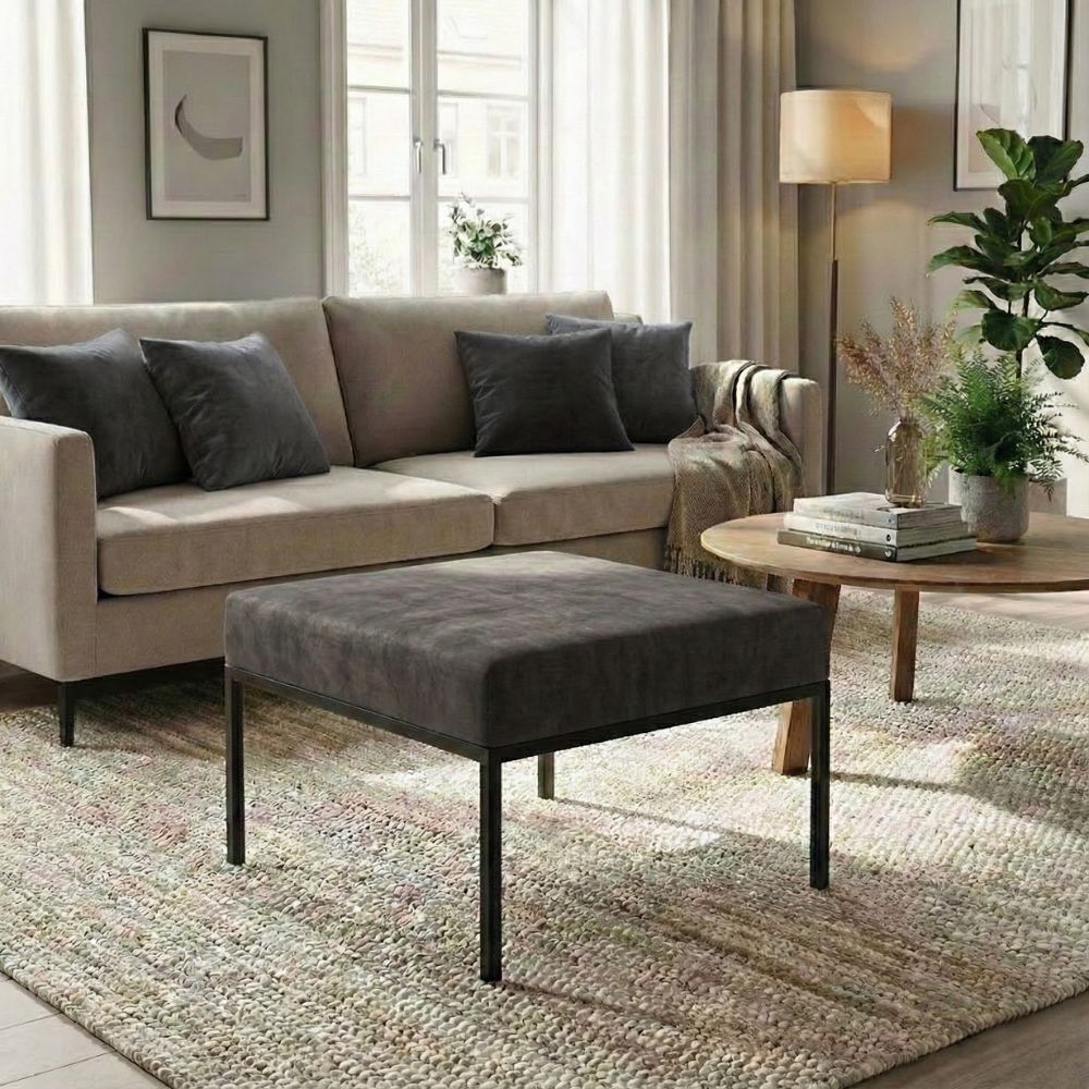 Nowoczesny mebel w loftowym stylu to designerski dodatek do Twojego salonu. Stylowa, czarna, metalowa rama oraz miękkie, delikatnie połyskujące obicie. Podnóżek dostępny w wielu wariantach kolorystycznych, koniecznie sprawdź pozostałe.