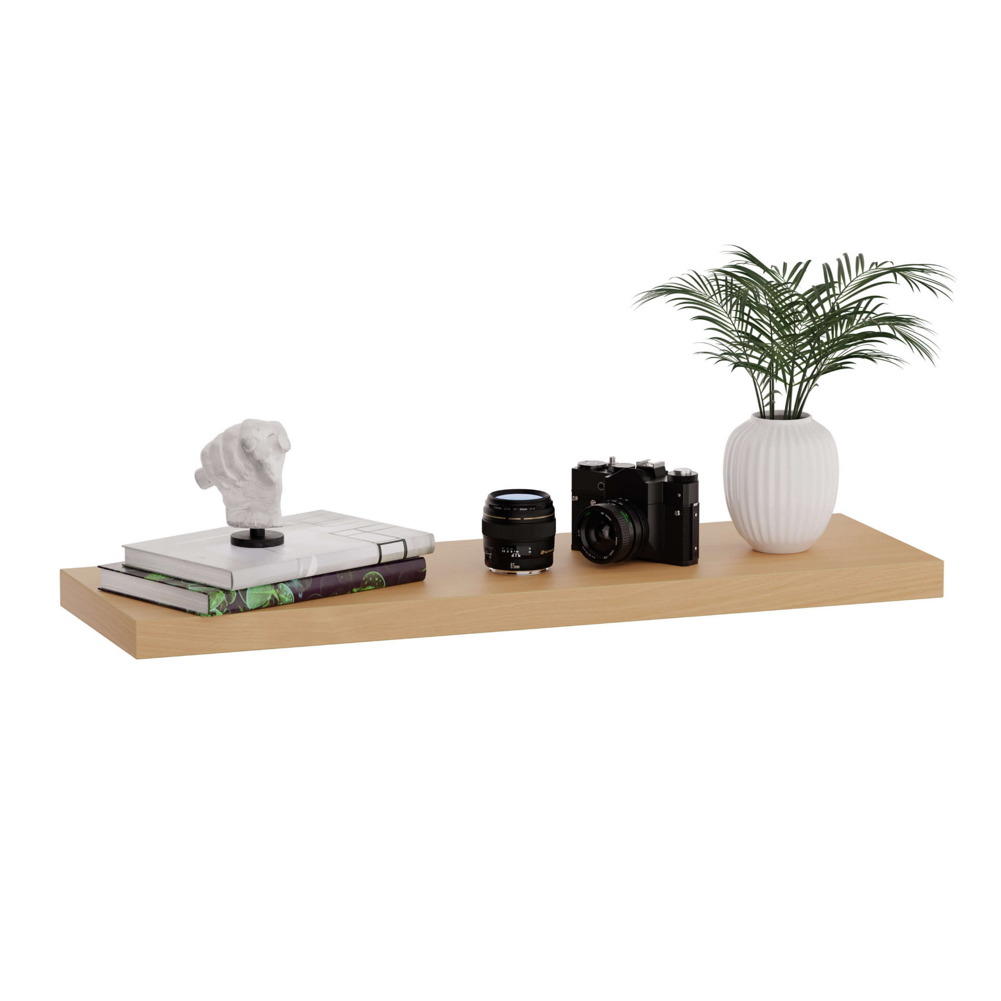 Nowoczesna półka wisząca wykonana jest z płyty laminowanej wysokiej jakości o grubości 36 mm. Oznacza to, że jest solidnym i wytrzymałym meblem, na którym bez obaw możesz trzymać swoje ulubione książki oraz inne akcesoria. Jej szczególną zaletą jest całkowity minimalizm - nie posiada żadnych dodatkowych ozdobników oraz całkowicie niewidoczne mocowanie na ukrytym ramieniu.
